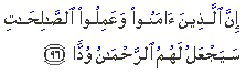 "Allah the Most Gracious bestows love on those who believe and do good."