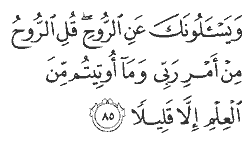 "They ask you concerning the spirit: say, 'the spirit is of my Lord's command. Of knowledge, what you have been given a little."