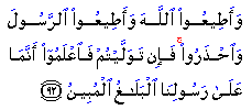 "Obey God, and obey the Messenger, and be ever on your guard. But if you turn away, then know that Our Messenger's only duty is a clear delivery of the message [entrusted to him]."