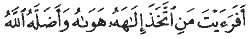 "Do you see the one who took as his god his own vain desire (hawa) and [consequently] God left him to stray?"