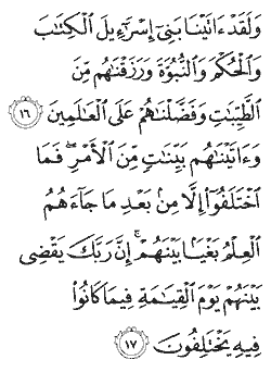 Al-Jathiya (The Kneeling One) - Chapter 45: Verse 16-17