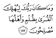 "And                         your Lord would never destroy human habitations                         wrongfully, while their inhabitants are righteous."