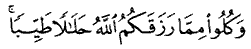 "Eat of what God has provided you as a lawful (halal) and good (tayyib)."