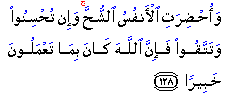 "And human selves are swayed by greed. But if you do good and stay away from evil, verily, Allah is ever well-acquainted with what you do."