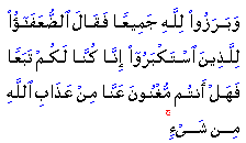 "They will all be marshalled before Allah together: then will the weak say to those who were arrogant, 'For us, we but followed you; can ye then avail us to all against the wrath of Allah.'"