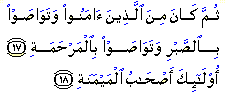 "Then will he be of those who believe, and enjoin patience, (constancy, and self-restraint), and enjoin deeds of kindness and compassion. Such are the Companions of the Right Hand."