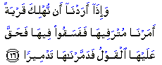 "And when it is Our will to destroy a town, We command its luxury-loving citizens, and they deal corruptly in it; thus the sentence upon it is justified, and We destroy it utterly."