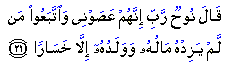 Noah said: "My Lord! They have disobeyed me and followed those whose wealth and children have increased them only in loss and self-ruin."