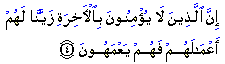 "As for those who will not believe in the life to come, We make their deeds seem fair to them, and so they wander about in distraction."